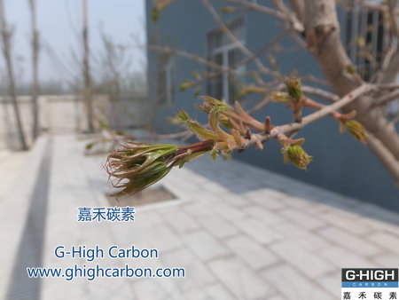 嘉碳廠區(qū)綠化初見(jiàn)成果,栽植的綠樹(shù)終于發(fā)出了嫩芽。